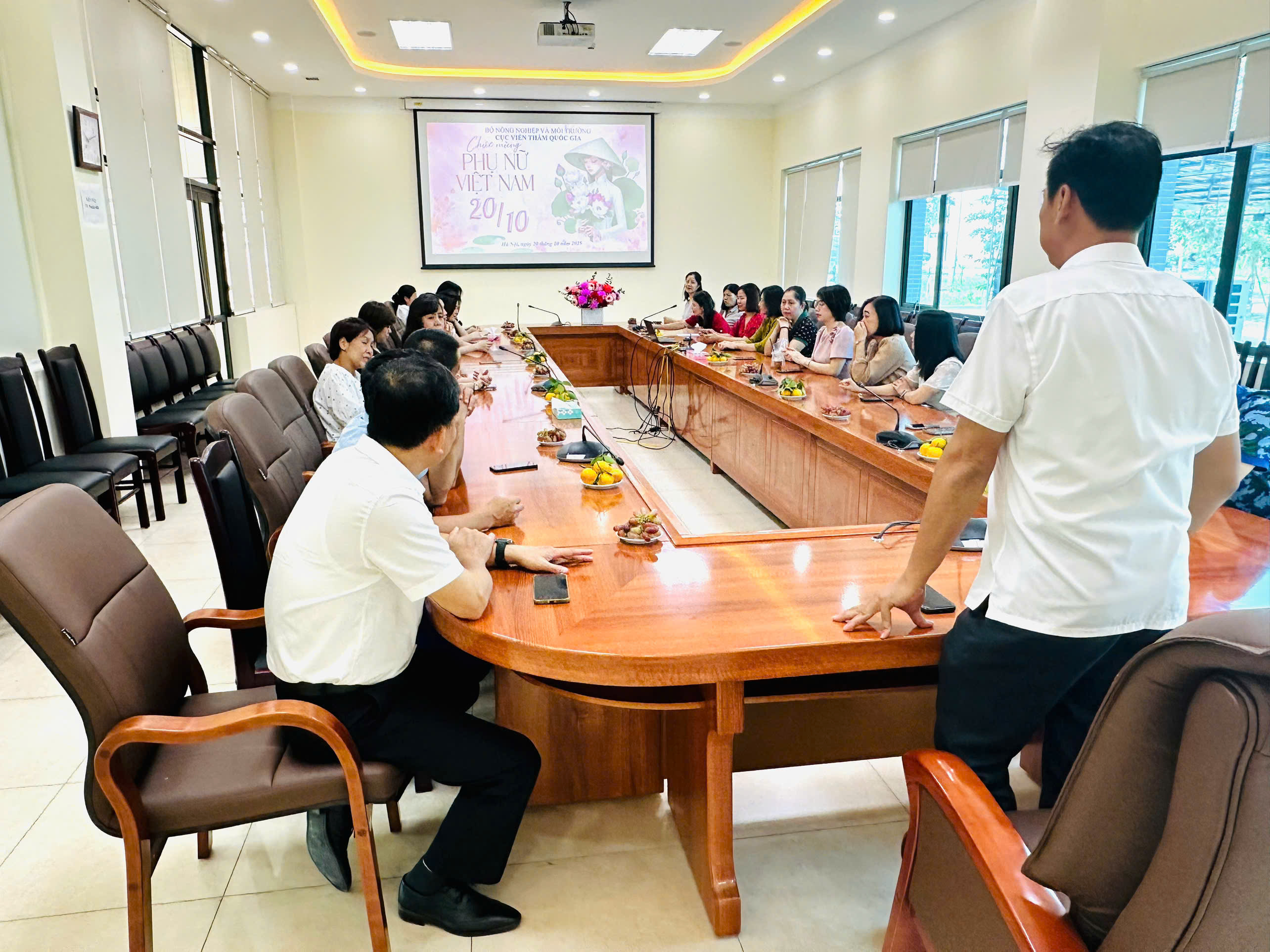 Sáng 20/10, tại Cục Viễn thám quốc gia tổ chức gặp mặt đội ngũ nữ công chức, viên chức và người lao động đang công tác tại khối hành chính nhân dịp kỷ niệm 95 năm ngày thành lập Hội Liên hiệp Phụ nữ Việt Nam (20/10/1930 - 20/10/2025). Phát biểu tại buổi gặp mặt, thay mặt lãnh đạo Cục Viễn thám quốc gia, Phó Cục trưởng Lê Quốc Hưng gửi lời chúc mừng tới toàn thể đội ngũ nữ công chức, viên chức và người lao động Cục nhân Ngày Phụ nữ Việt Nam (20/10), chúc các chị em luôn mạnh khỏe, hạnh phúc và gặt hái nhiều thành công trong công việc và cuộc sống; đồng thời trân trọng cảm ơn, ghi nhận những đóng góp quan trọng của đội ngũ nữ công chức, viên chức và người lao động trong sự phát triển chung của Cục thời gian qua.Chia sẻ về đặc thù của lĩnh vực viễn thám, Phó Cục trưởng đã đánh giá đây là lĩnh vực công nghệ cao, đòi hỏi cán bộ luôn nâng cao trình độ, cập nhật kiến thức mới, cán bộ nữ dù ở bất cứ vị trí nào từ người làm quản lý, hoặc vận hành trạm thu, hình ảnh người phụ nữ viễn thám luôn hiện lên thật tận tâm, trách nhiệm, năng động và sáng tạo. Không chỉ giỏi chuyên môn, chị em còn là những “tổng quản” tài ba trong gia đình, là hậu phương vững chắc cho chồng con và cả… đồng nghiệp nam yên tâm công tác! Nhân dịp này, Lãnh đạo Cục xin trân trọng ghi nhận và cảm ơn những đóng góp thầm lặng nhưng vô cùng to lớn của các chị em đối với sự phát triển của Cục Viễn thám quốc gia trong suốt thời gian qua. Mong rằng trong thời gian tới, các chị em sẽ tiếp tục giữ vững tinh thần “giỏi việc nước, đảm việc nhà”, tiếp tục tỏa sáng bằng trí tuệ, bản lĩnh và trái tim nhân hậu, góp phần xây dựng tập thể Cục ngày càng đoàn kết, chuyên nghiệp, và đầy sức sống.