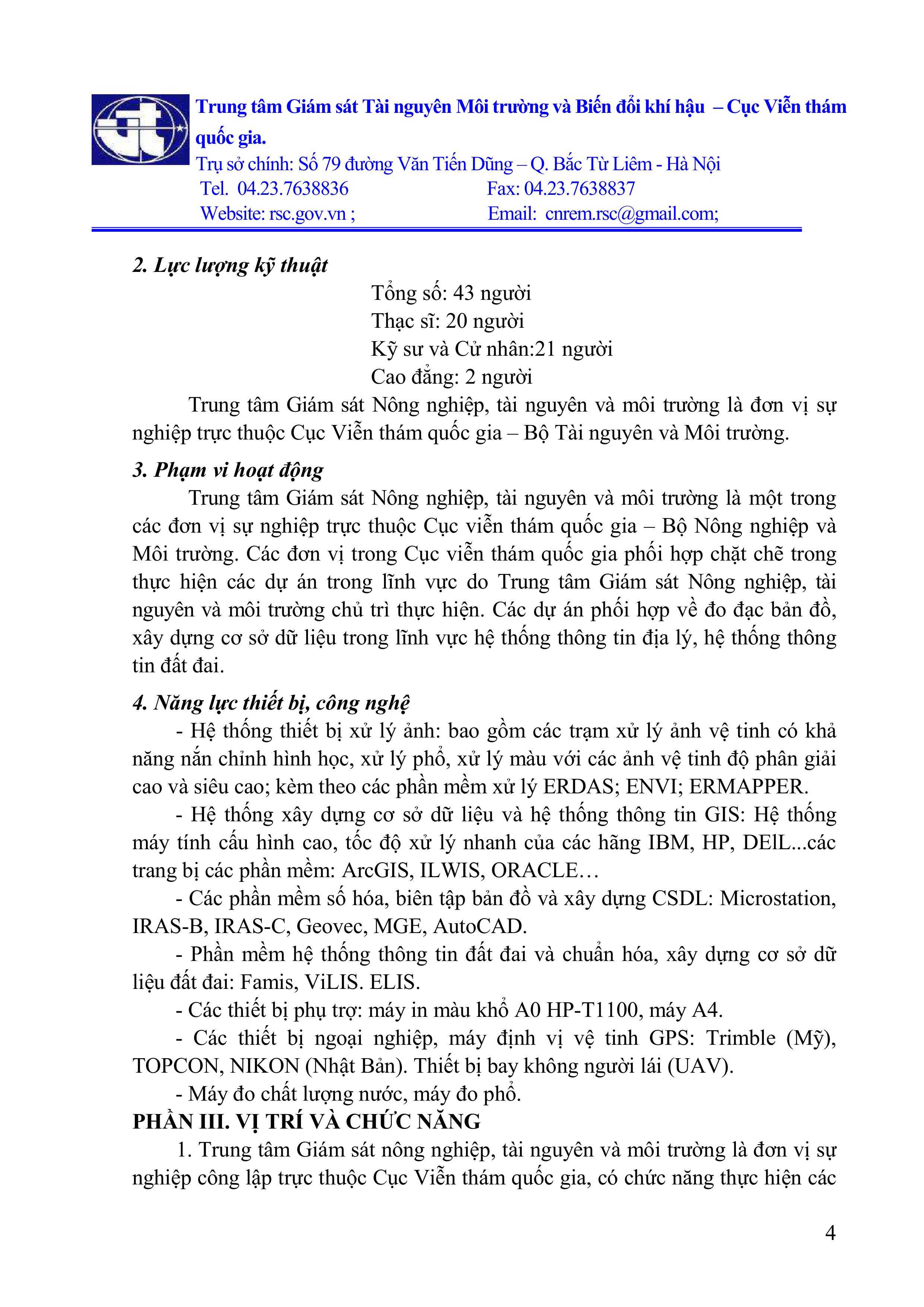 Hồ sơ năng lực Trung tâm Giám sát Nông nghiệp, tài nguyên và môi trường